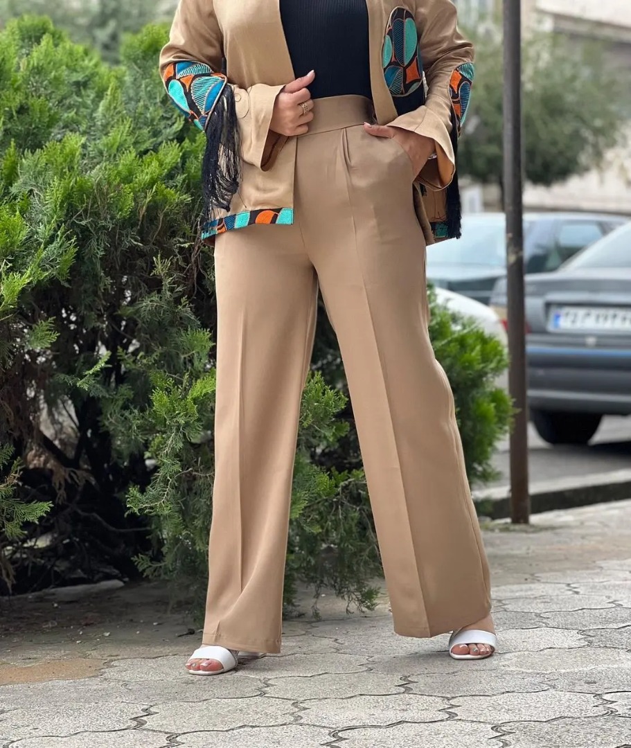 شلوار نیم بگ کتان سیلک بیرون پوش و مجلسی جیبدار قد بلند...
