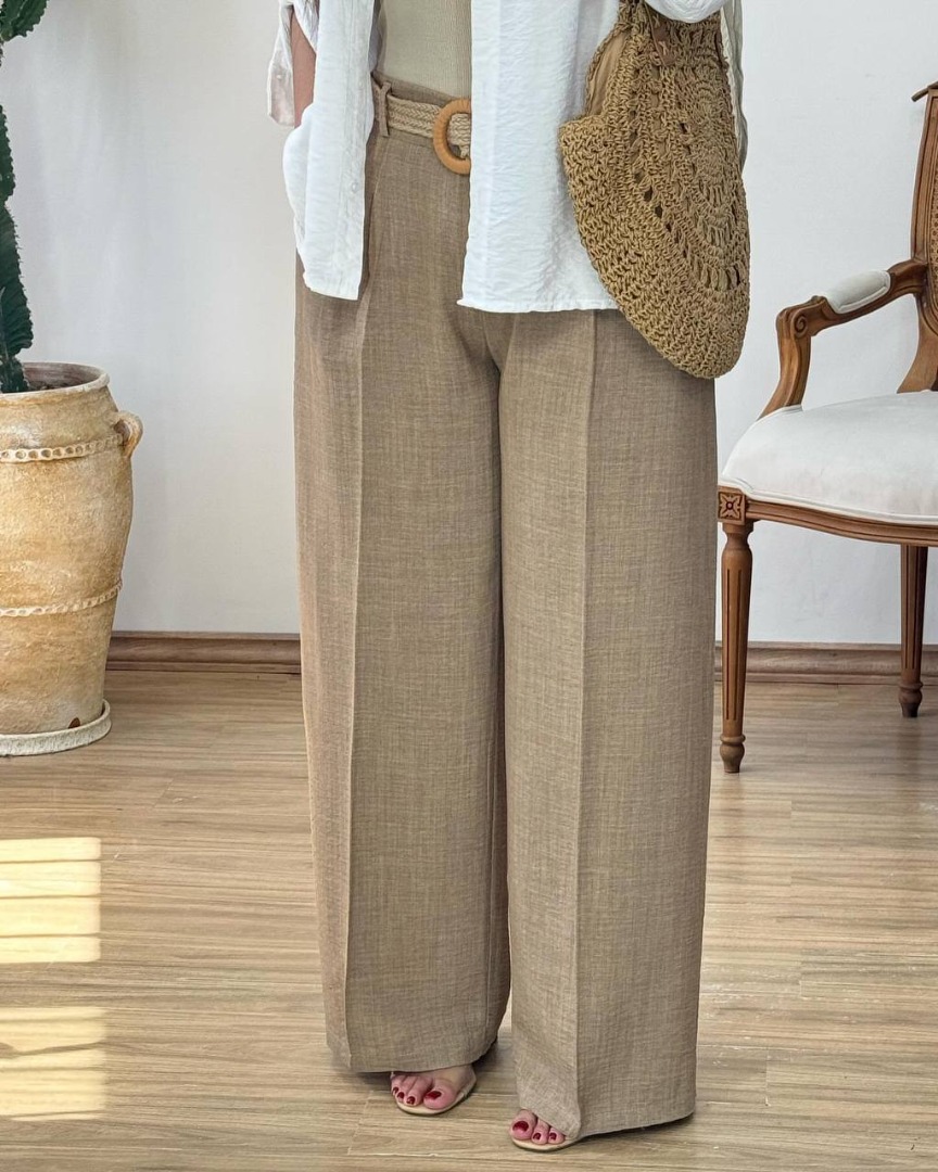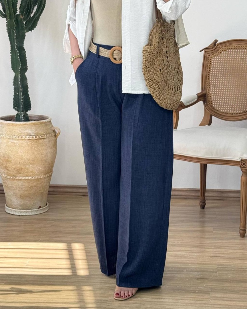 امتیاز کاربران به: شلوار شانتون ژاکارد نیم بگ بیرون پوش و جیبدار قد 107 کد 1048