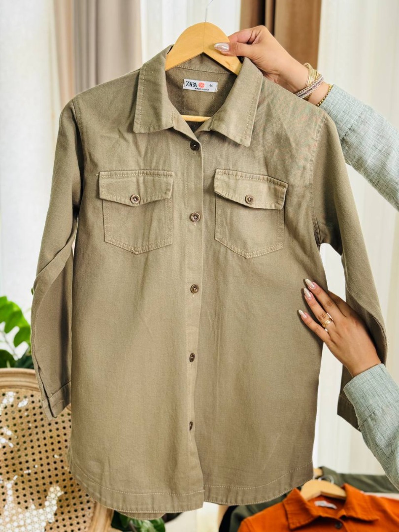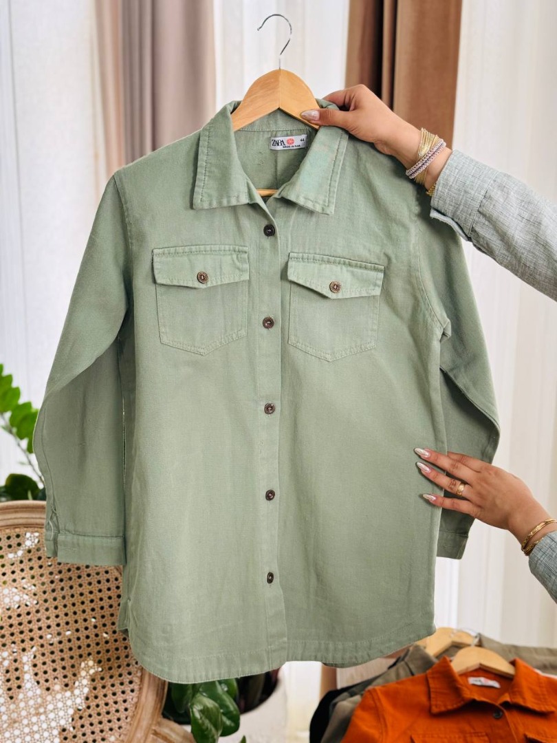 شومیز مانتویی بیرون پوش جین رنگی رنگی کاغذی بدون چروکی کد 2001 Shomiz