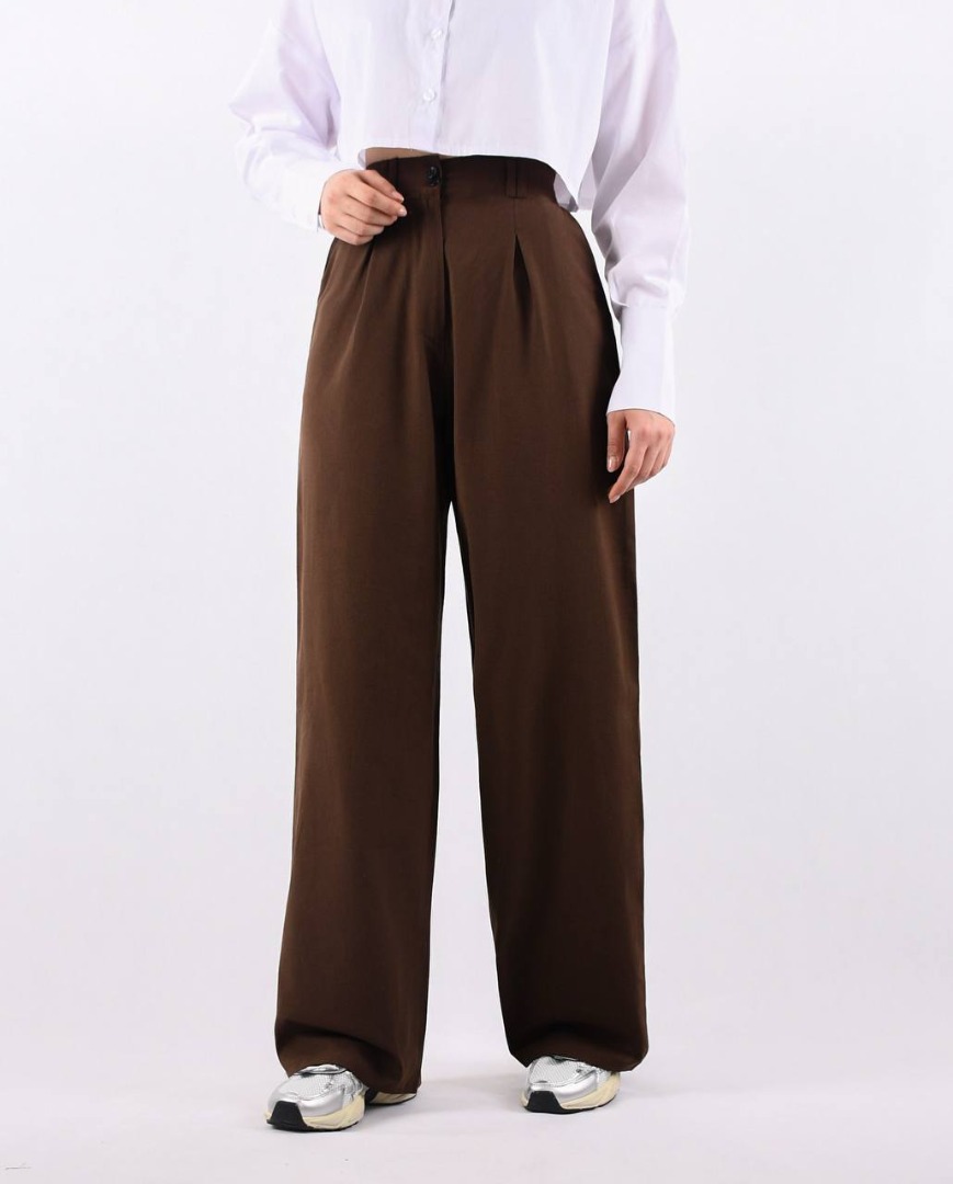 شلوار نیم بگ کرپ دابل ترک گشاد راسته اولدمانی بیرون پوش کد 20100 Pants